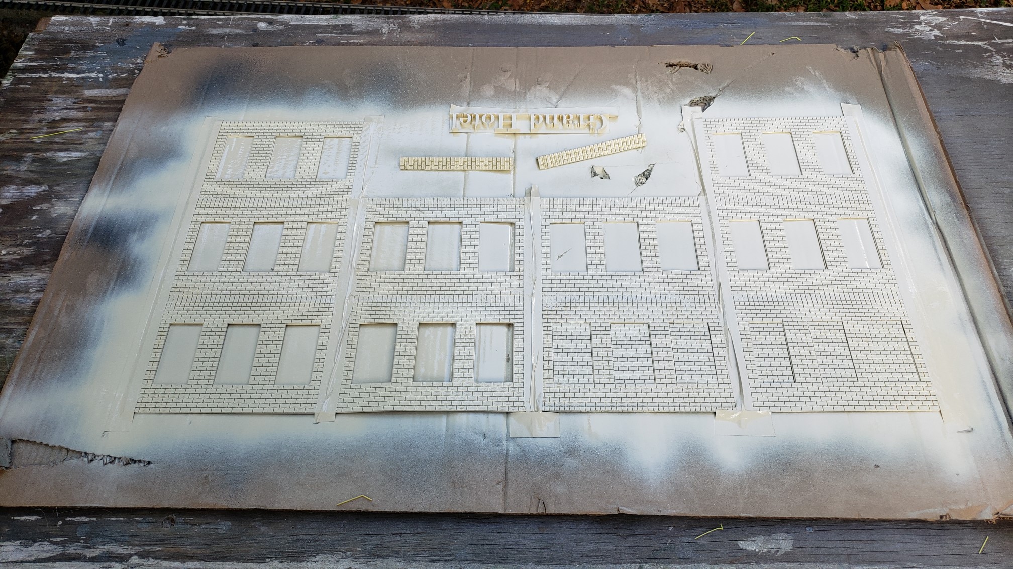 What started out as a desire to upgrade the woefully lacking downtown marketplace and its ever diminishing buildings turned into a major production for Halloween 2021. It's difficult to design a 3D printed casting mold as multiple pieces that need assembled into one continuous casting mold. Still working on honing our design, drafting, and 3D printing skills, we needed a way to quickly turn around the downtown marketplace. Enter the idea of a "skin"! Too thin for a "snap fit" approach, those pieces will need glued together.