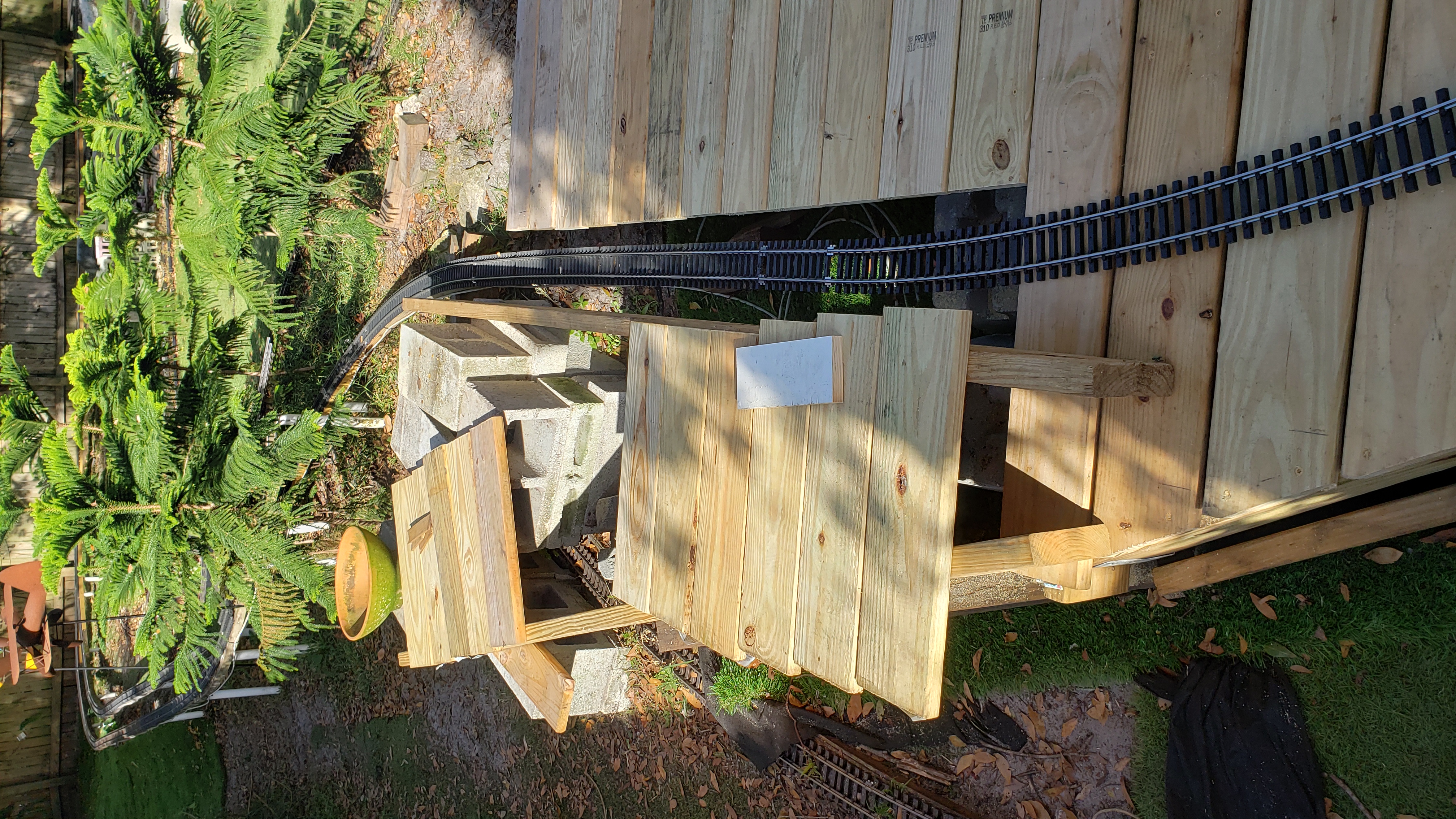 Decking Trimmed To Fit Track Plus "Flintstone" Railing