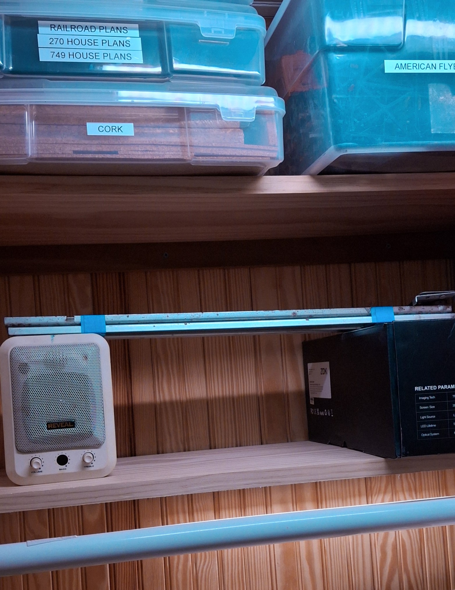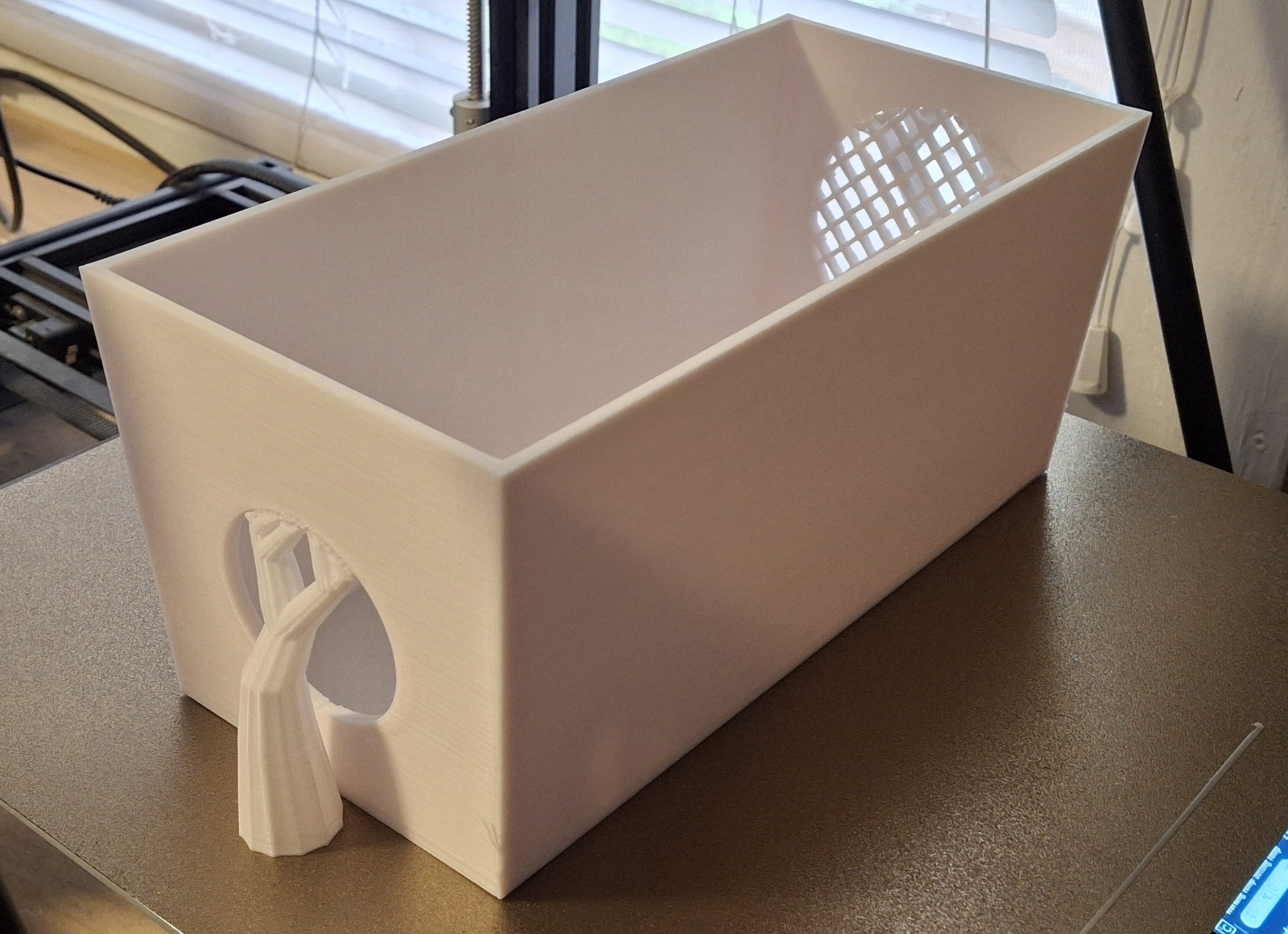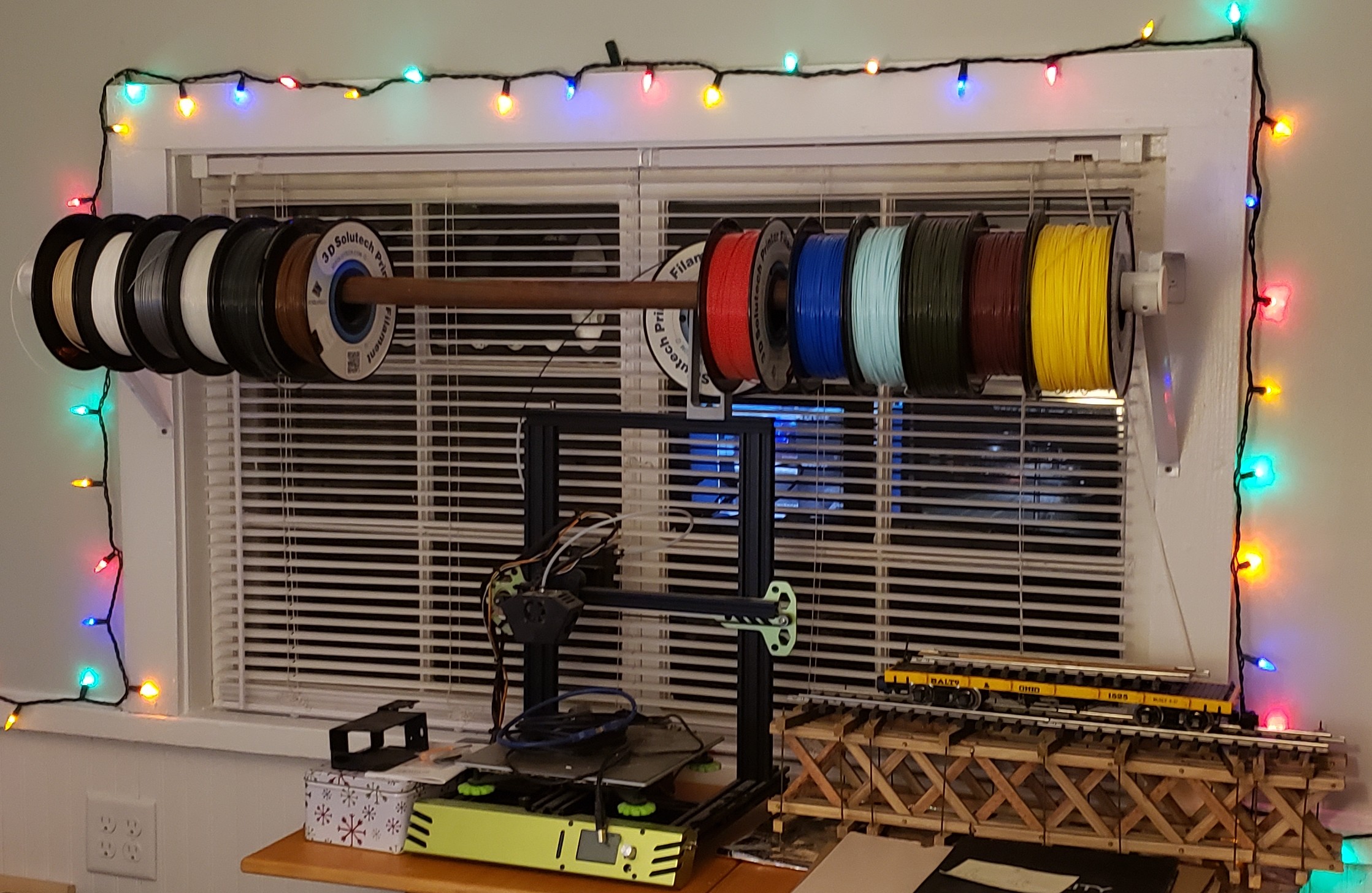 The original small spools of green and blue were made by Amolen. These full spools are made by Sunlu, also the maker of my new printer. Every so often they have a bulk filament sale and I’ll buy four to eight spools at once, basically half price. That explains why I have two 90qt tubs full of filament along with an entire six foot long shelf. Normally I go through this stuff a lot faster than I have lately because of other, higher priority tasks.