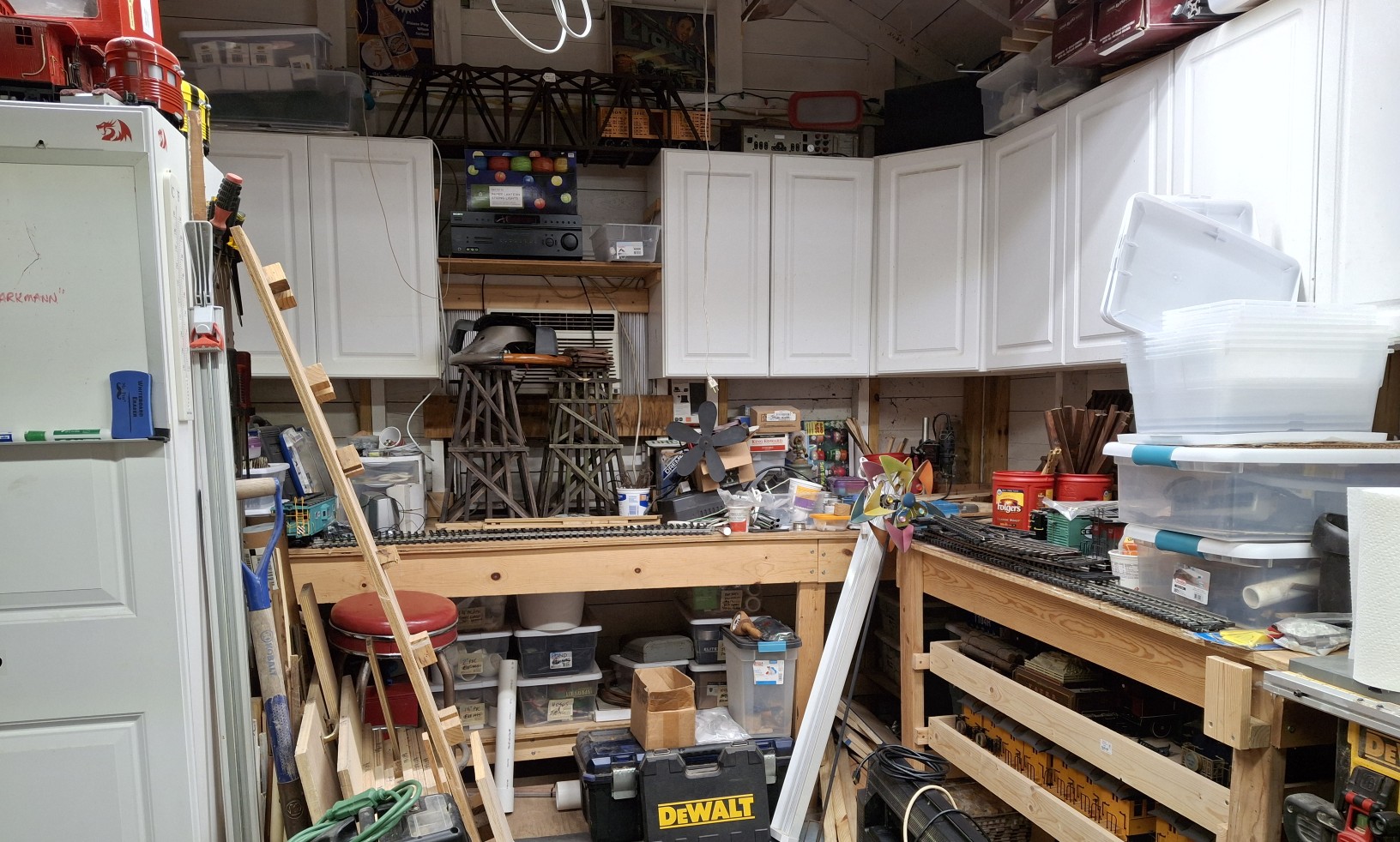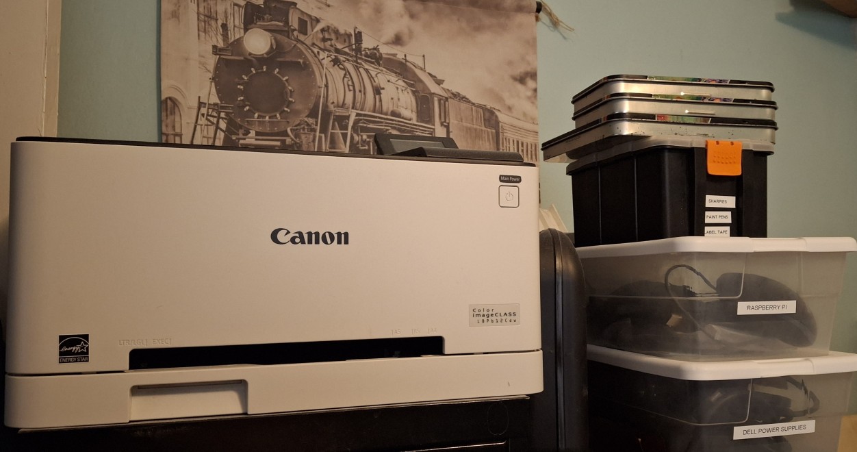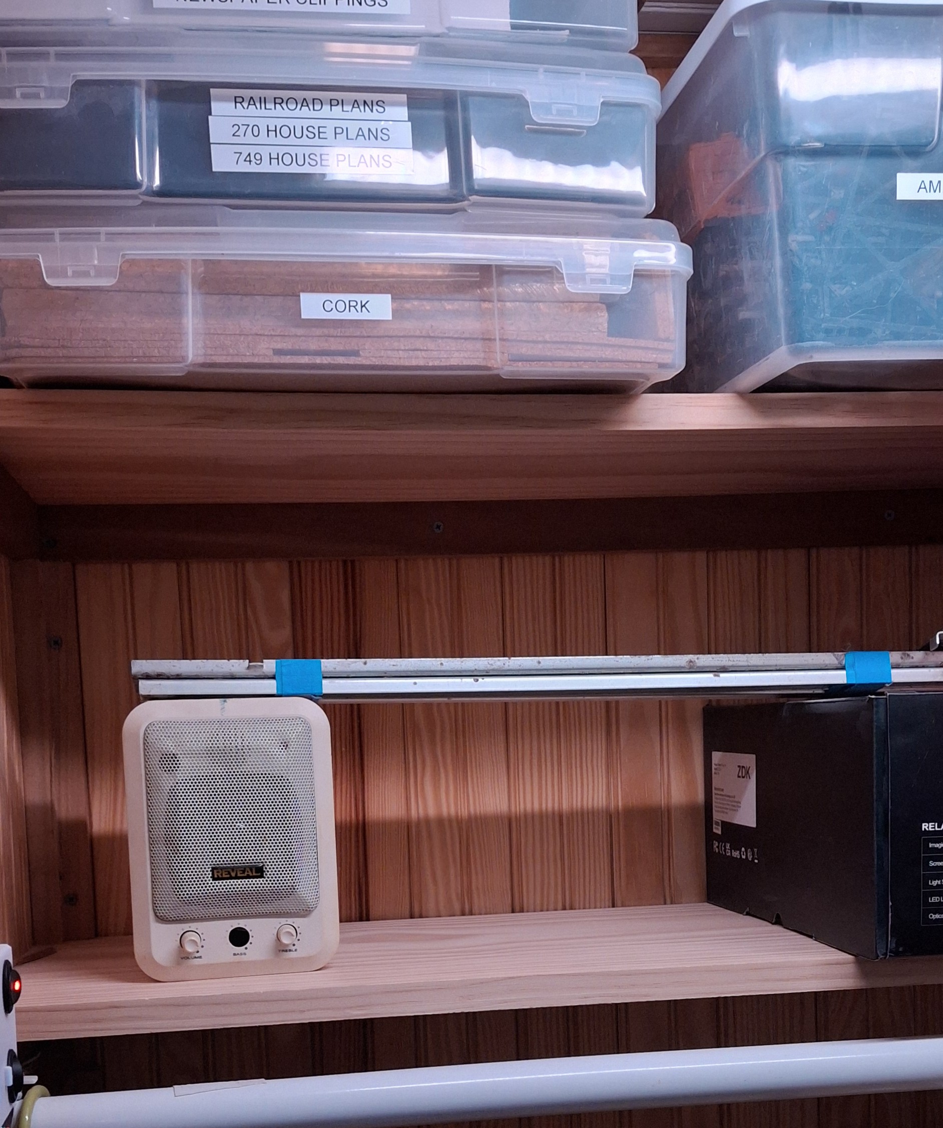 The original small spools of green and blue were made by Amolen. These full spools are made by Sunlu, also the maker of my new printer. Every so often they have a bulk filament sale and I’ll buy four to eight spools at once, basically half price. That explains why I have two 90qt tubs full of filament along with an entire six foot long shelf. Normally I go through this stuff a lot faster than I have lately because of other, higher priority tasks.