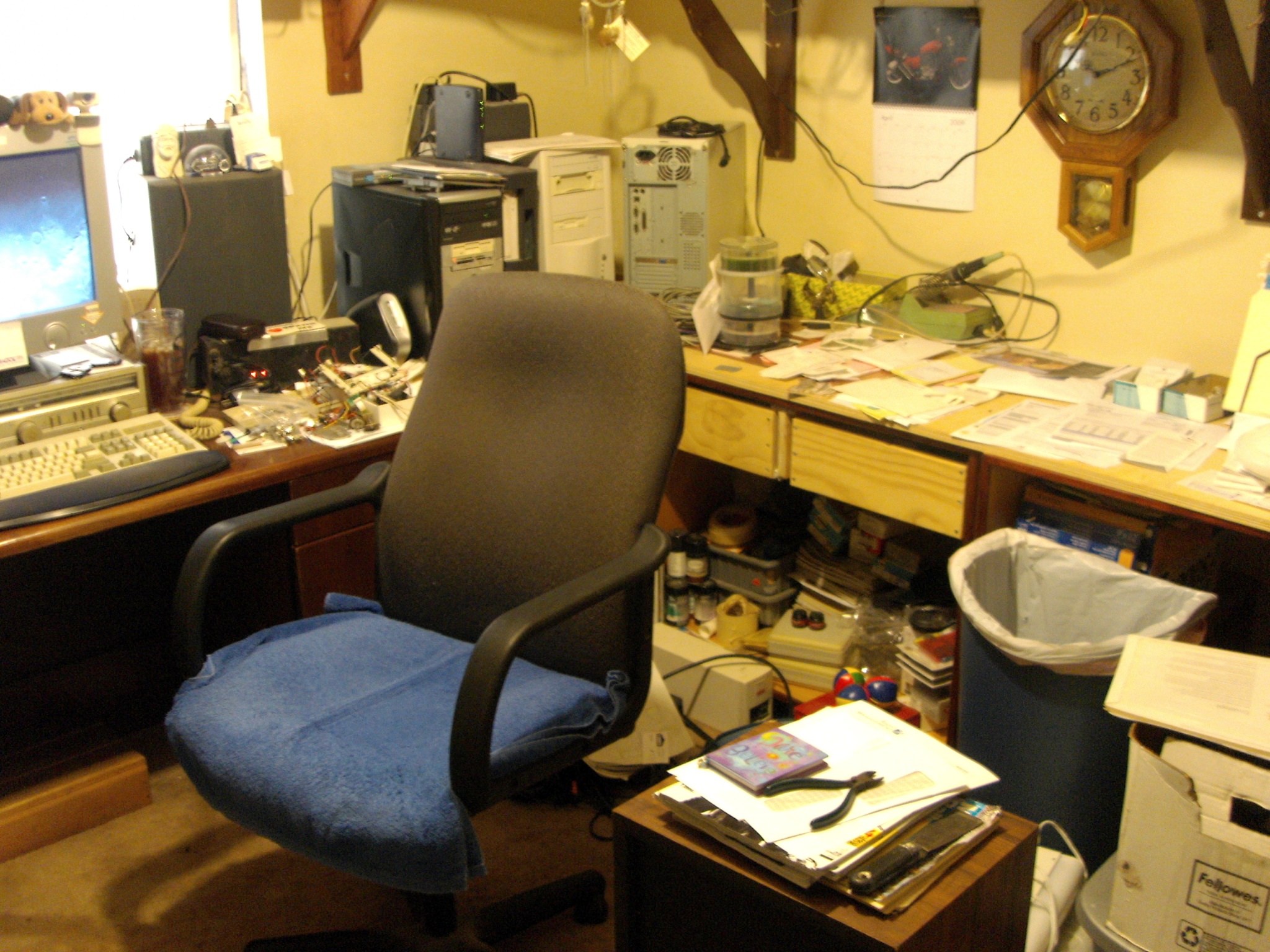 We got the Halloween decorations down from the attic the last weekend of September, before we even knew about the offer on the other house. Ann decorated the house and I decorated the office. I had a couple of glow in the dark skulls that had been sitting over there in the corner room for more than a decade. With the CFL black light bulbs in place of the standard lamp bulbs on either end of my desk, both those skulls glow brightly!