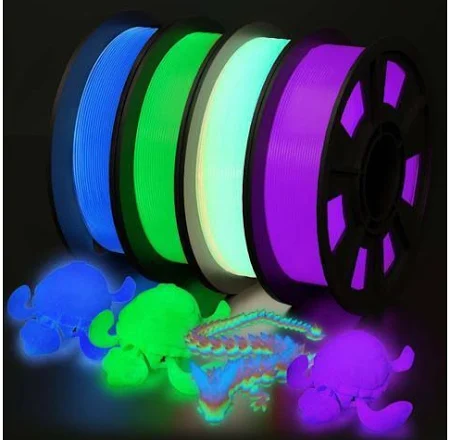 When I was searching for 5 volt UV LED strips, I also looked for other glow in the dark filament colors, other than the green and blue I already have. I readily found red and purple available and bought a 1kg (2.2lb) spool of each. Orange and yellow are also available, but it appears the glowing orange starts out as yellow and the the glowing yellow starts out as green. I’ll pass on those for now. The purple arrived first, so I loaded it into the new printer.