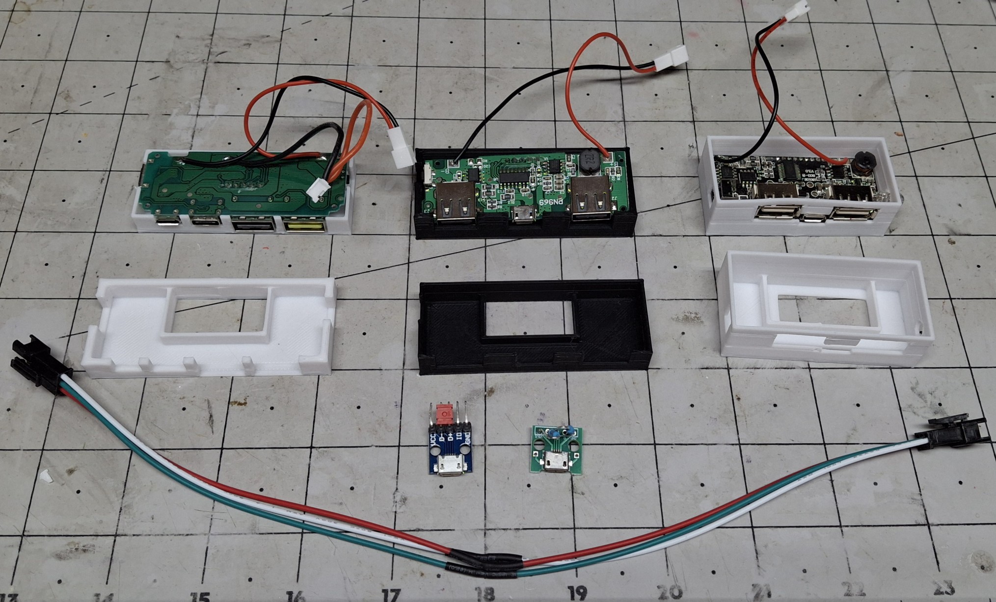 While that printed, I put together some four into one harnesses to allow a single battery to power four of the half pints at once. They went more than two days when they each had their own battery. Four from one should at least last all night. Then I got to thinking why not make a USB micro to battery connector to eliminate the need for a battery (and charger) altogether. If it’s always plugged in, it’s always on.