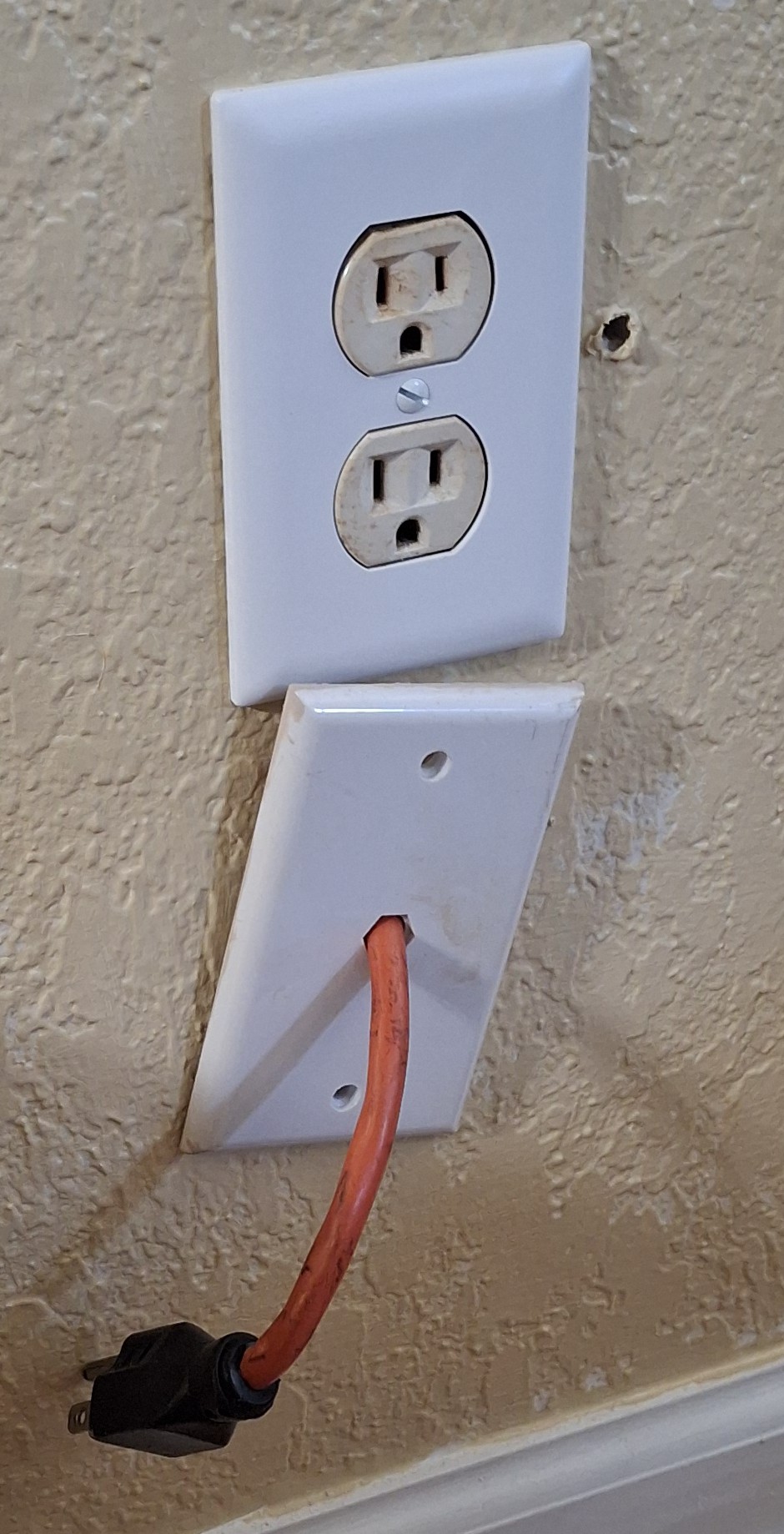 But that was just the beginning. Having to replace the burned out bulb in the skull candelabra, I decided to buy more of those neon “flicker flame” bulbs. Good choice. Now the eyes flicker too! Then I ordered more and replaced all the incandescent bulbs in a twenty light string with them and strung them around the book cases in the office. And while I was sitting in a meeting, I modified the closet lighting test jig to add Halloween lights.