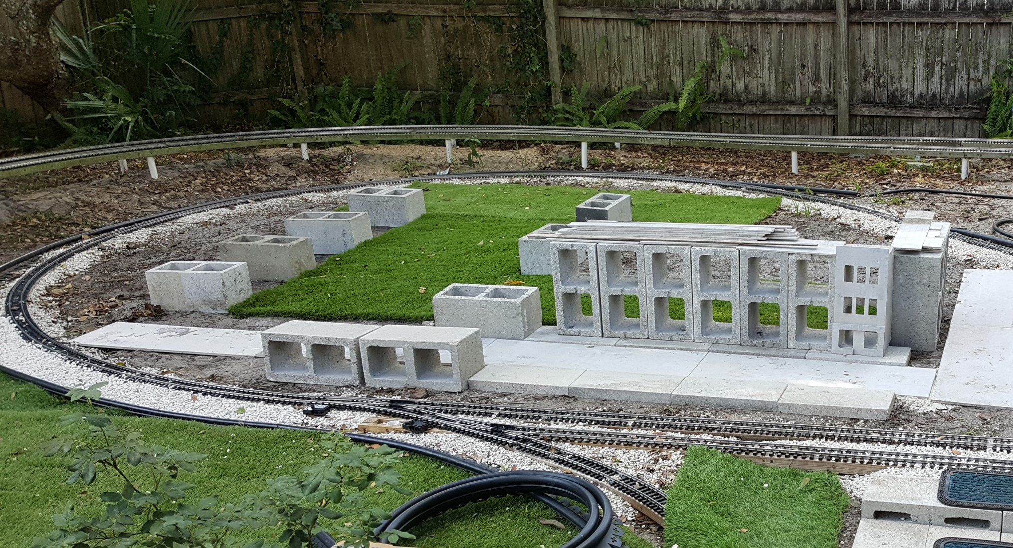We had grand ideas for the "Downtown Marketplace", as we call it, but the passage of time has not been kind. Like the Barkyard itself, it's had many incarnations over time. Our original plan included "company houses" behind downtown, but they occupied too much of the puppy playground. After a number of yelping collisions with those concrete blocks, we decided to downsize downtown. This increased the play area by half the size of the lower loop.