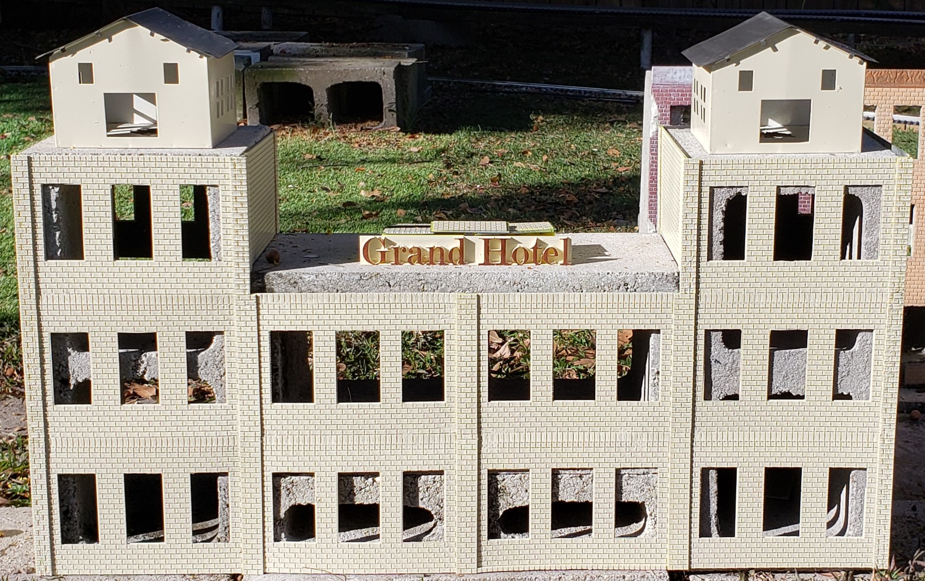 The Grand Hotel slowly emerged, taking shape one 5" x 8" section at a time, each taking more than three hours to print. It takes days of printing and more than two of the one kilogram spools of PLA filament just to print the skin for the Grand Hotel. That's nearly four and a half pounds of plastic! The "Corner Drugstore" takes nearly another spool of plastic and it's questionable whether there's enough time left before Halloween to finish it.