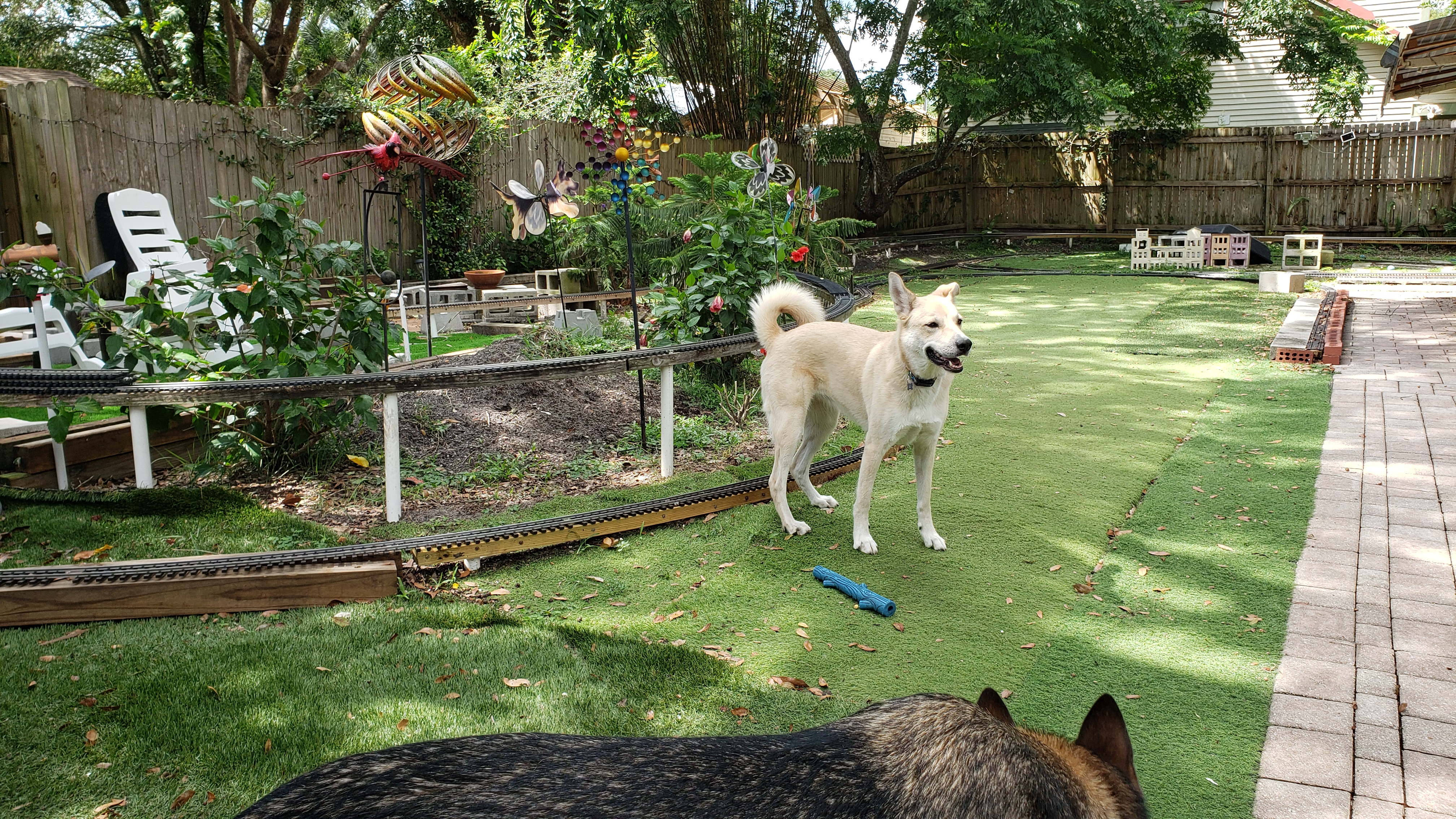 Rocket Chasing Kai Around And Around The Barkyard