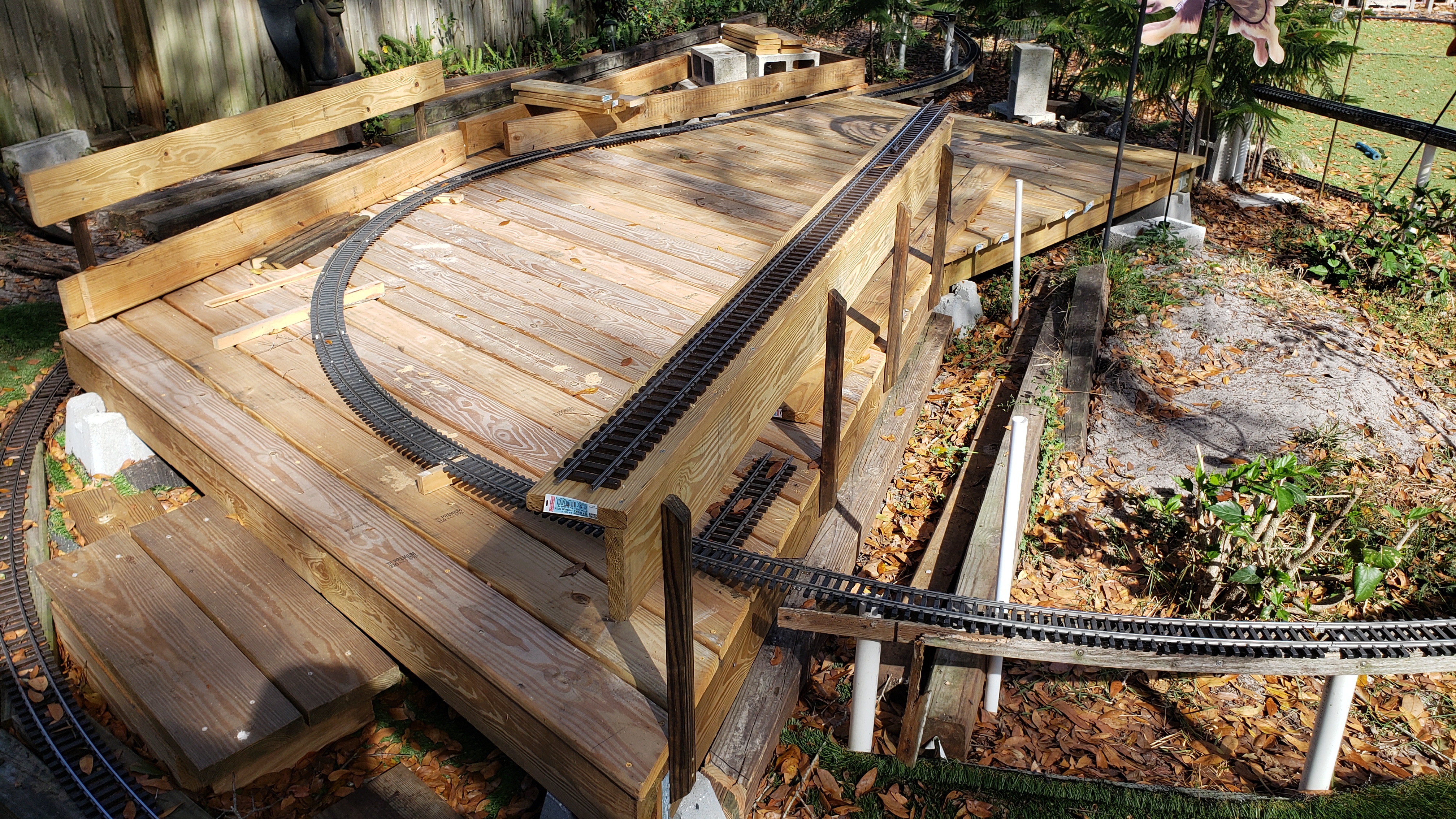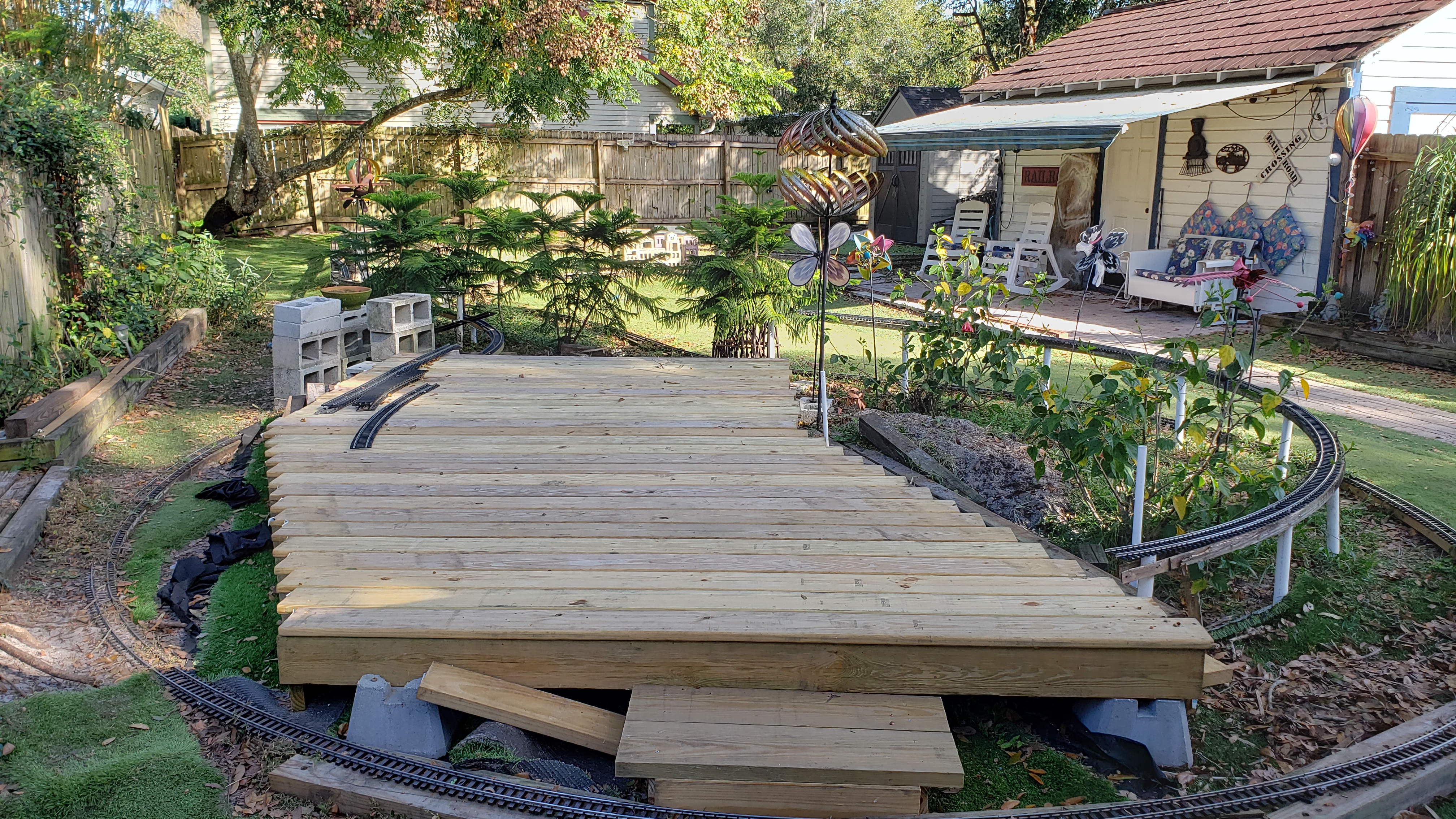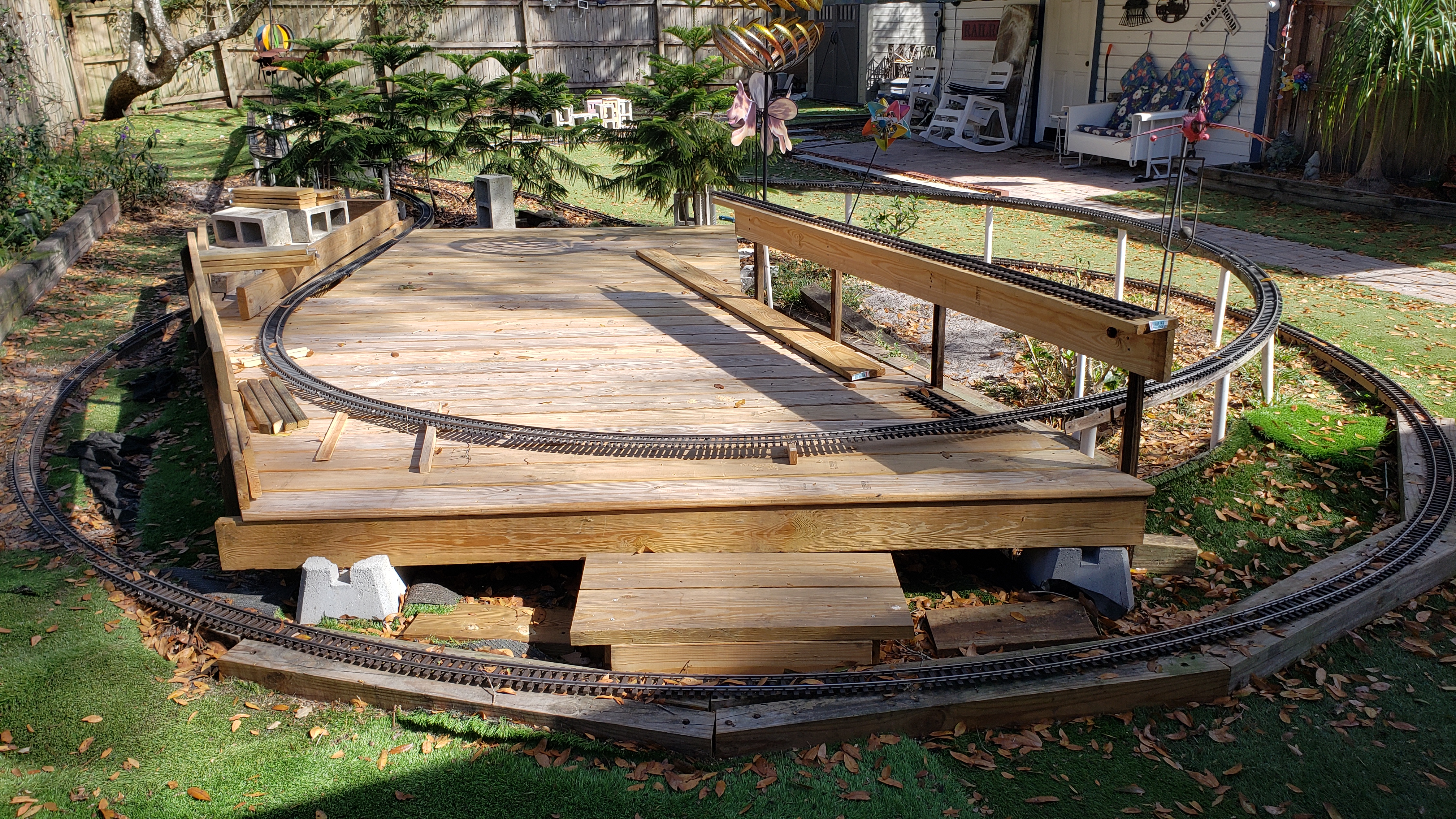 Decking Trimmed To Fit Track Plus "Flintstone" Railing