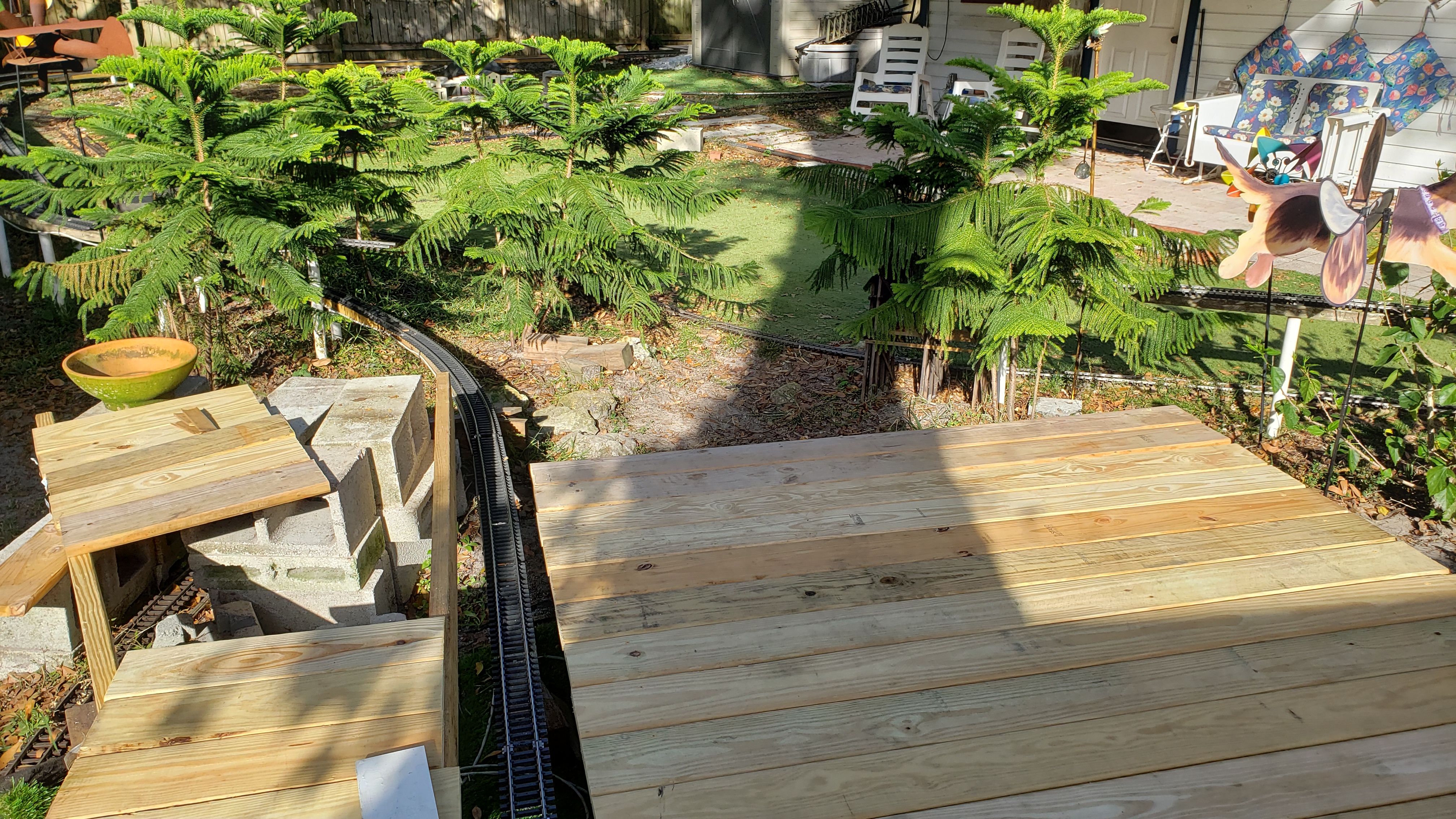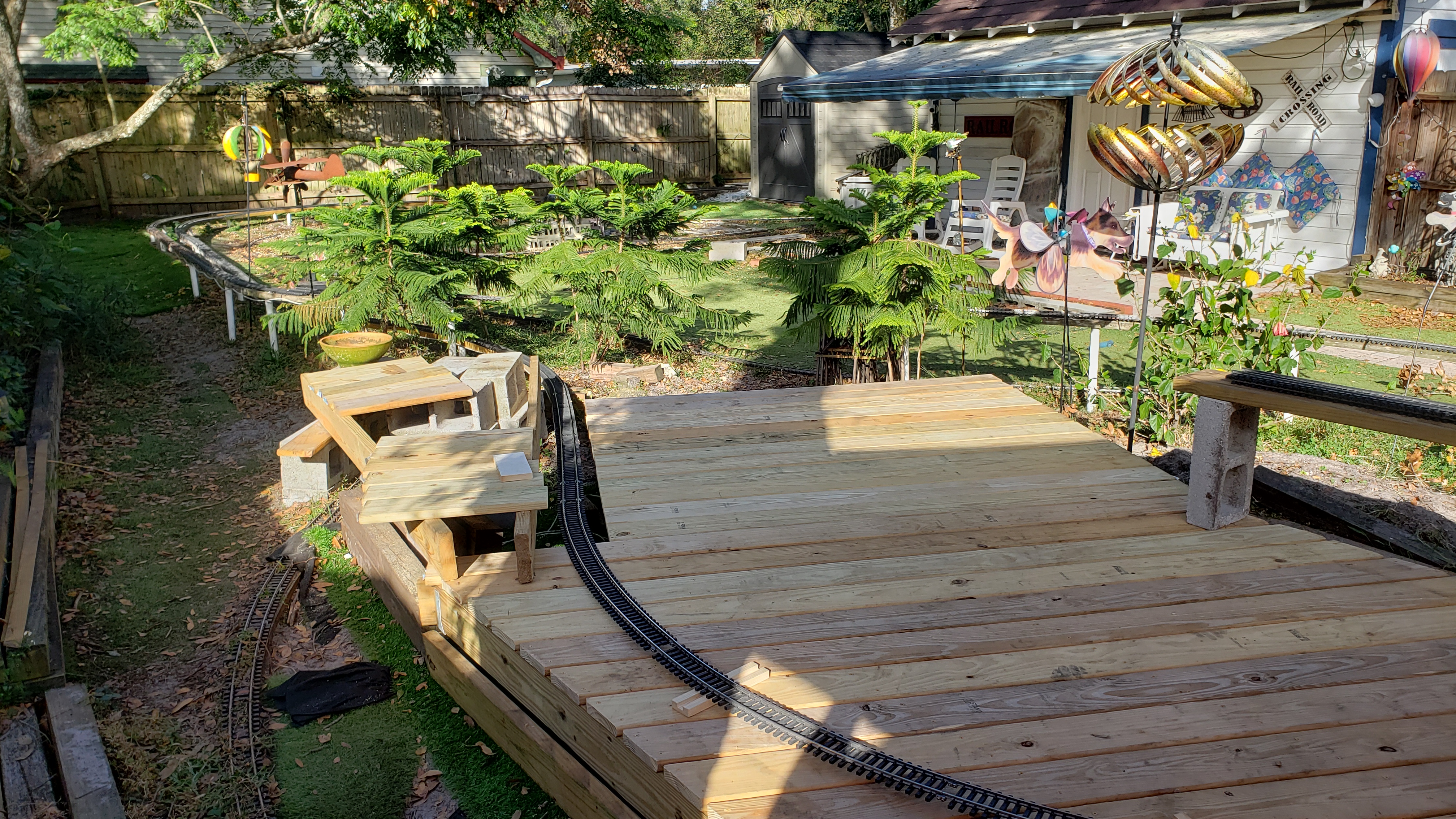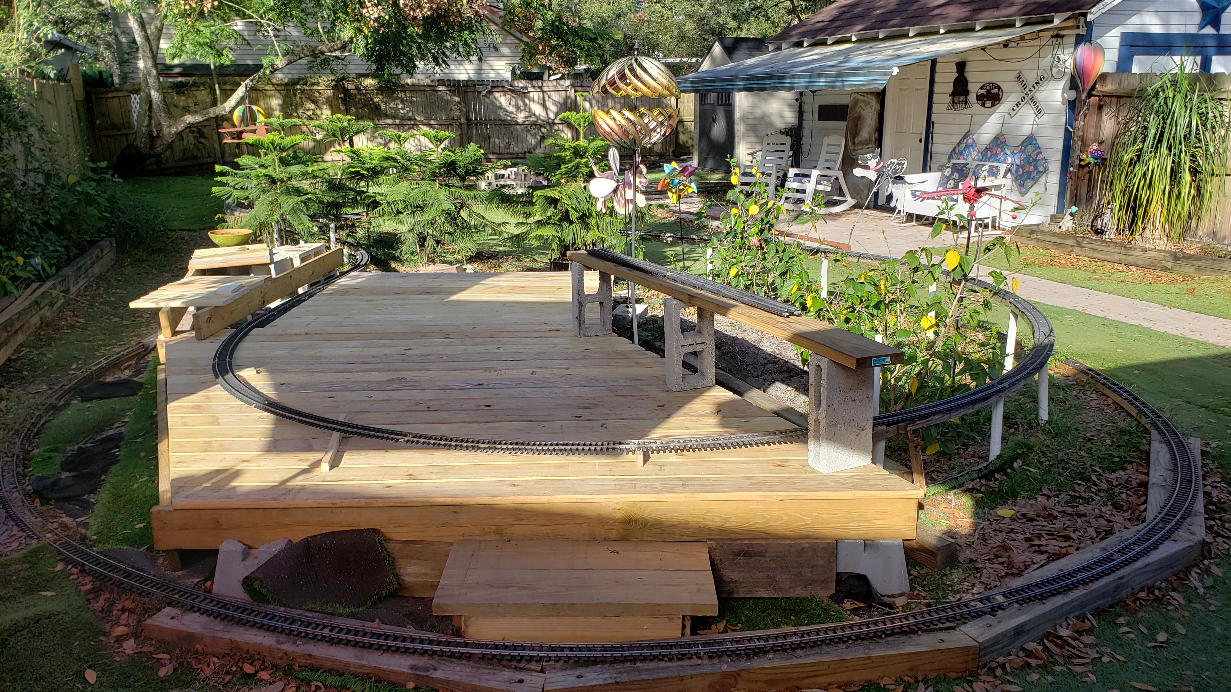 Decking Trimmed To Fit Track Plus "Flintstone" Railing