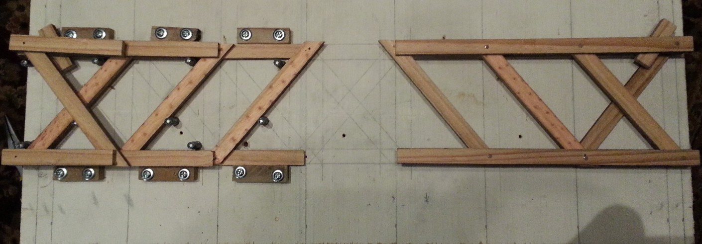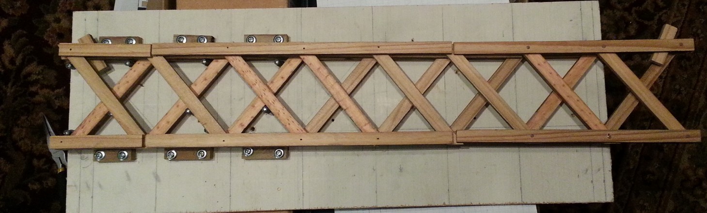 All that aside, the one lesson learned is the segmented approach may work well for selling and shipping kits, but it leaves much to be desired for easily assembling a sturdy bridge. The problem is the number of components that need to come together at every joint, or rather, the juggling of all those components while attempting to fasten them together at that joint.