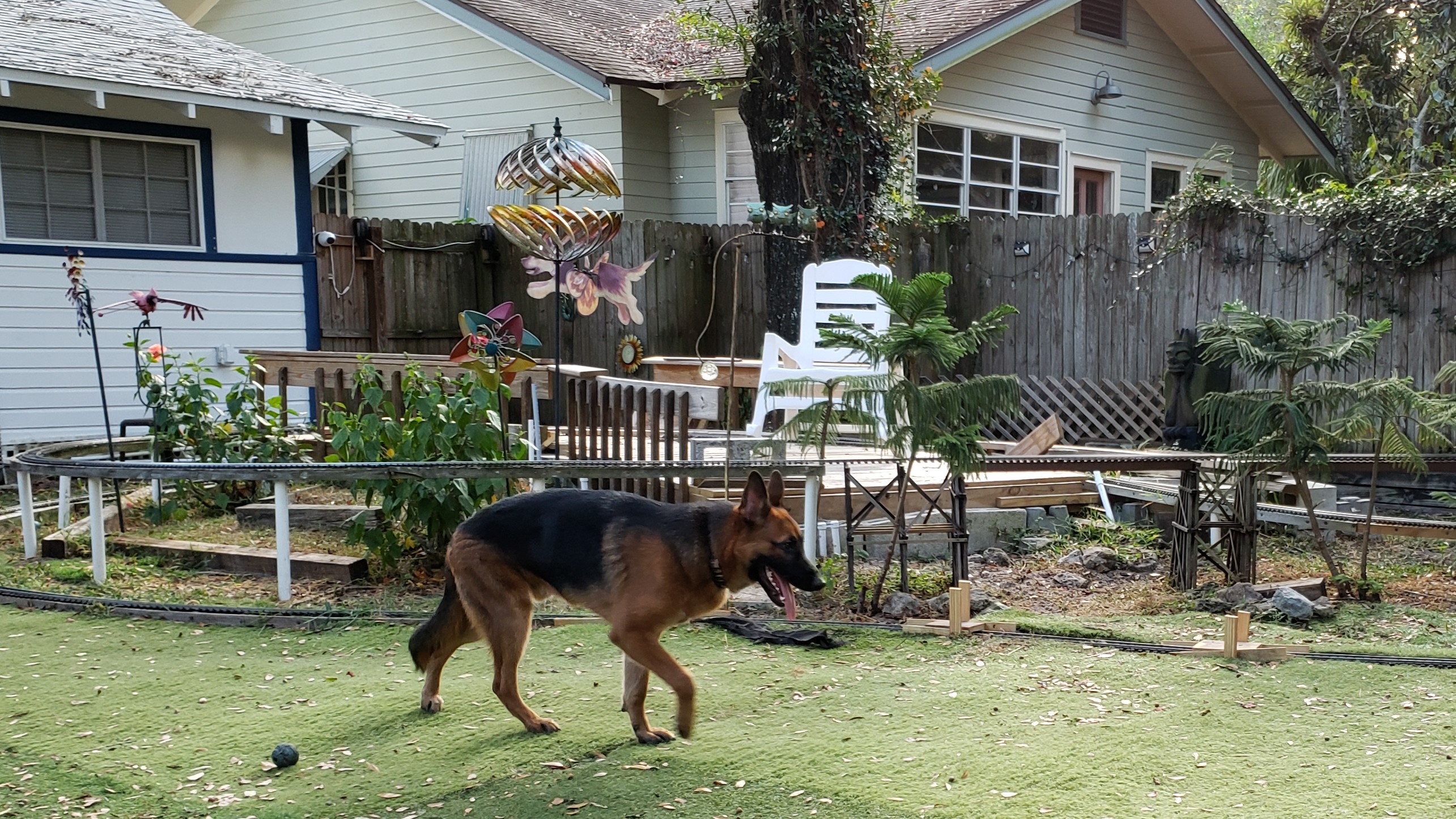 Not only did the railroad get put on hold, but everything we'd done so far had to be ripped up and stored yet again! The railroad was put on hold for years! When we finally did bring everything out of mothballs, it was much better than when we first moved here. The third incarnation is truly the Barkyard RR. We were finally able to run trains and enjoy the view! It only took a total transformation of the back yard...